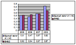 Рис.3.1 Доля единого налога от УНС и ЕНВД в консолидированный бюджет с 2005 по 2008 гг. [18]