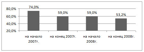 Увеличение же прибыли в 2008 году на рубль продаж способствовало повышению уровня рентабельности собственного капитала на 17,61%. Тогда как, снижение уровня оборачиваемости собственных вложений привело к понижению уровня рентабельности собственного капитала на 24,05%.
