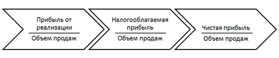 Эффективность основной деятельности предприятия по производству и реализации товаров, работ и услуг характеризуется показателем рентабельности продукции. Он определяется отношением прибыли к полной себестоимости продукции. Этот показатель может быть широко использован в аналитических целях, так как позволяет производить расчеты, соотнося различные показатели прибыли с различными показателями затрат на продукцию. Пример показан на рисунке 1.