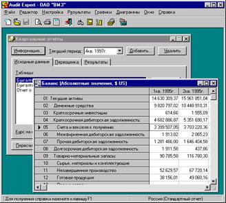 Программа Audit Expert предоставляет широкие возможности анализа прошлой деятельности и текущего состояния предприятия на основе преобразованных в международный формат таблиц Баланса и Отчета о прибылях и убытках. Итоговые таблицы - Баланс, Отчет о прибылях и убытках вызываются в двух вариантах: