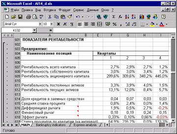 Помимо анализа баланса и отчета о прибылях и убытках, программа Audit Expert автоматически рассчитывает стандартные финансовые показатели, характеризующие различные стороны деятельности предприятия.