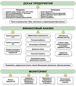 v получать практически все, регламентируемые законодательством методики финансового анализа по финансовому оздоровлению, оценки государственных унитарных предприятий, акционерных обществ с долей государственной собственности;