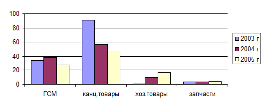 Расходы на хозяйственные материалы возросли. Их рост можно объяснить тем, что в отделении проводились работы по ремонту здания, кабинетов, а это потребовало дополнительных затрат по этой подстатье. По расходам на приобретение запчастей просматривается незначительное увеличение – 12,4% от расходов за 2003 год.