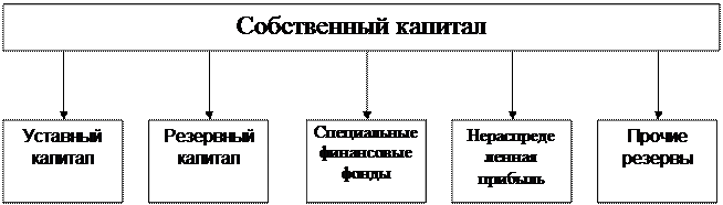 Собственный капитал характеризует общую стоимость средств предприятия, принадлежащих ему на праве собственности и используемых им для формирования определенной части активов. Эта часть актива, сформированная за счет инвестированного в них собственного капитала, представляет собой чистые активы предприятия. Собственный капитал включает в себя различные по своему экономическому содержанию, принципам формирования и использования источники финансовых ресурсов: уставный, добавочный, резервный капитал. Кроме того, в состав собственного капитала, которым может оперировать хозяйствующий субъект без оговорок при совершении сделок, входит нераспределенная прибыль; фонды специального назначения и прочие резервы. Также к собственным средствам относятся безвозмездные поступления и правительственные субсидии. Величина уставного капитала должна быть определена в уставе и других учредительных документах организации, зарегистрированных в органах исполнительной власти. Она может быть изменена только после внесения соответствующих изменений в учредительные документы.