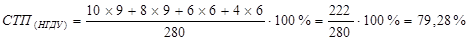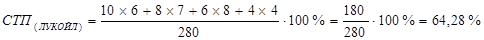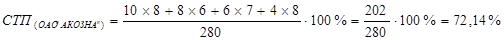 Идеальный поставщик набрал бы 280 баллов (в результате сложения произведений важности характеристик из оценки в каждой из них). Применив те же правила для остальных предприятий, выясним, что Магазин «Сигнал» заработало 222 балла из 280 возможных (или 79,28 % от идеального производителя), анализируемое предприятие ООО «Ремкомплект» - 202 балла (72,14%).
