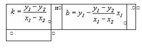 Согласно данным таблицы 1, для коэффициентов k и b в этом случае справедливо: