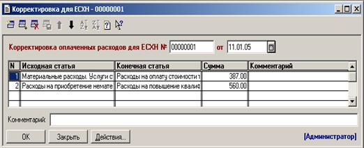 Для отражения расходов в справочнике «Движение денежных средств» используется поле затраты для единого сельскохозяйственного налога. В процессе расчета налоговой базы производятся корректировки статей расходов и доходов. В результате чего пересчитывается скорректированная сумма в каждой статье (рис. 3).