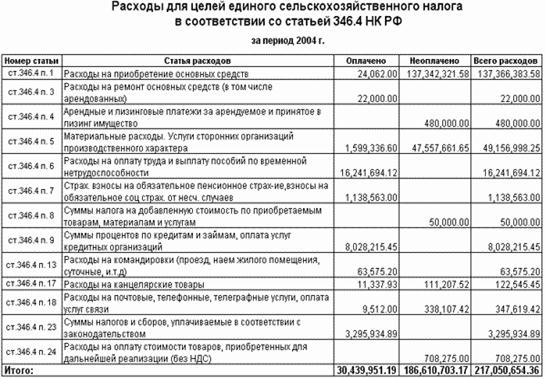 Рисунок 6 Расходы для целей единого сельскохозяйственного налога в соответствии со статьей 346.4 НК РФ