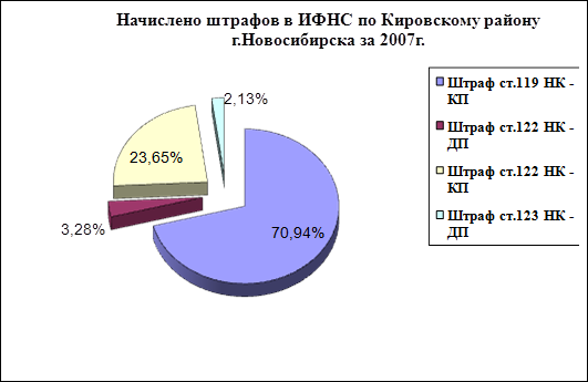 Рис. 3.5 Начислено штрафов в ИФНС по Кировскому району г.Новосибирска за 2007г.