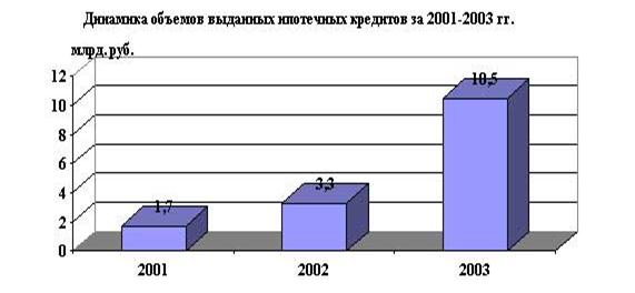 Рисунок 8 Динамика объёмов выданных ипотечных кредитов за 2001-2003 год млрд. руб