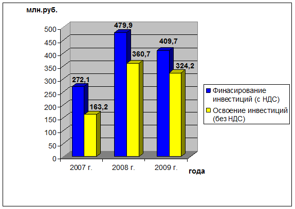 Далее для наглядности представим инвестиционную деятельность ОАО «Нижнекамскшина» в динамике за 2007-2009г.г. на рисунке 5.