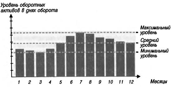 · На первой стадии по результатам анализа помесячной динамики уровня оборотных активов в днях оборота или в сумме за ряд предшествующих лет строится график их средней «сезонной волны» (рис. 1.2).