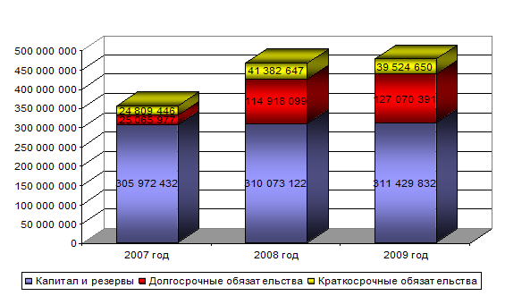 Структура пассивов баланса за 2007-2009 год (тыс. руб.)