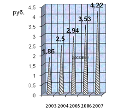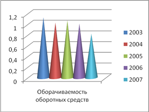 Тенденцию к увеличению за 2003-2007 гг. обнаруживает показатель рентабельности оборотного капитала. В 2003 г. на каждый рубль оборотного капитала было получено 3,6 коп. чистой прибыли, в 2007 г. рентабельность оборотного капитала увеличилась до 7,3%.