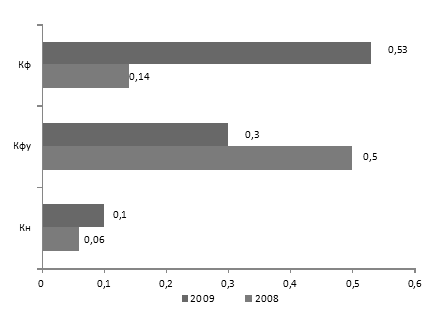 Таблица 8 – Коэффициенты финансовой устойчивости ТОО "Жулдыз" за 2008-2009 г.