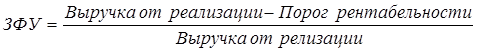 Если известен порог, то нетрудно подсчитать запас финансовой устойчивости (ЗФУ):