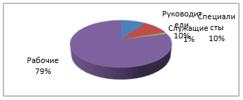 В силу своей специфики (металлургия) на предприятии львиную долю занимают основные рабочие.(почти 80%). Руководителей и специалистов – по 10% в структуре персонала, 1% занимают служащие.