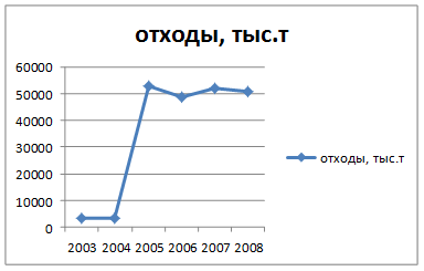 Общий объём образующихся отходов составил в 2008 году 50,9 млн. тонн, уменьшившись относительно 2007 года на 2,5%.