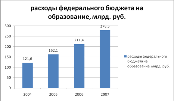 Из федерального бюджета в основном финансируются высшее профессиональное образование и научные исследования в образовательной сфере. В 2007 году расходы на образование увеличились на 31 % и составили 278,5 млрд. руб.