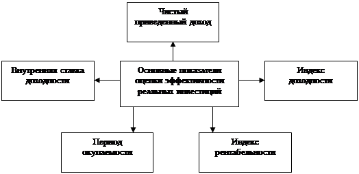 Рис. 3. Система основных показателей, используемых в процессе оценки эффективности реальных инвестиций