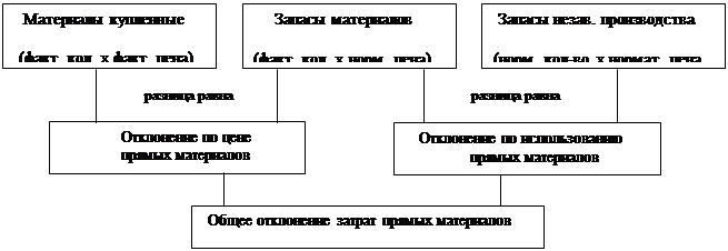 Отклонения затрат прямых материалов. Общее отклонение затрат прямых материалов определяется как разница между фактическими и бюджетными затратами прямых материалов.