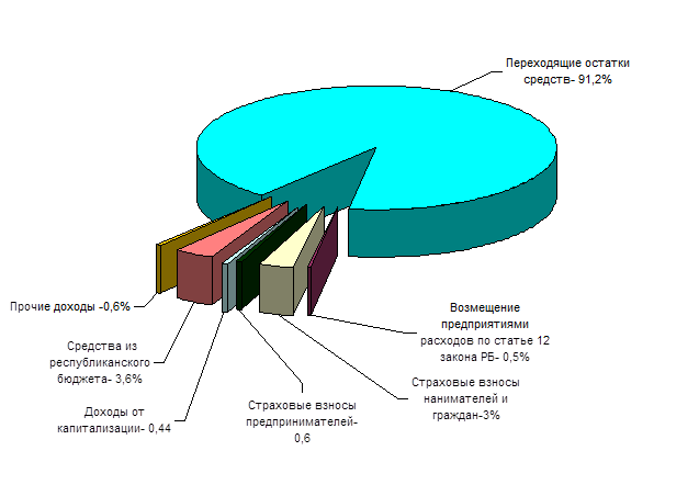Структура доходов Фонда в 2005 году показана на рис. 1. Хорошо видно, что основная часть доходов складывается из страховых взносов (более 90%). Существенная часть доходов (4,4%) получена от капитализации временно свободных остатков средств путем вложения их в депозиты банков и покупки государственных казначейских обязательств. Остальные составляющие доходной части не имеют заметного значения.