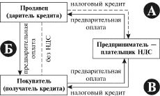 В — У Покупателя обязательства по НДС не возникают. Деньги направляются Предпринимателю в виде предварительной оплаты для приобретения облагаемых налогом товаров, в результате у Покупателя возникает налоговый кредит (который и будет полученным подарком), а у Предпринимателя — налоговые обязательства, которые автоматически погашаются налоговым кредитом, полученным на стадии А.