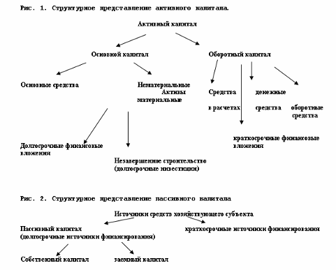 Соответственно выделяют две взаимосвязанные разновидности капитала: активный и пассивный капиталы. Активный капитал — это производственные мощности хозяйствующего субъекта, формально представленные в активе его бухгалтерского баланса в виде двух блоков — основного и оборотного капиталов (рис 1). Пассивный капитал — это долгосрочные источники средств, за счет которых сформированы активы субъекта; они подразделяются на собственный и заемный капиталы[3] (см. рис 2).