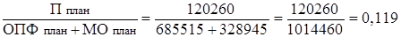 ∆Ур П = Ур усл.1 – Ур план = 0,239 – 0,119 = +0,120