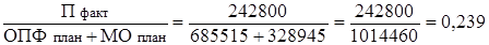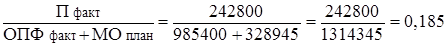∆Ур ОПФ = Ур усл.2 – Ур усл.1 = 0,185 – 0,239 = -0,054