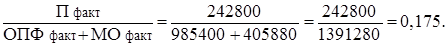 Уровень рентабельности производства за исследуемый период увеличился на 0,056 (0,175 – 0,119), в том числе за счет изменения: