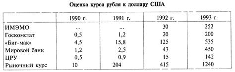 На основе теории ОППС проводилась оценка курса советского (российского) рубля к доллару США разными организациями (табл. 1).