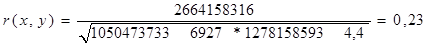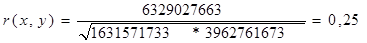 В данном примере получилось, что связь y более тесная с показателем x, так как коэффициент корреляции 0,25 больше, чем 0,23.