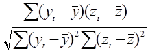 Расчет линейного коэффициента корреляции между показателем y и показателем z | |||||||