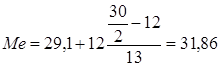 Мо = 29,1 + 12× (13 – 6) / ((13 – 6) + (13 – 5)) = 34,7