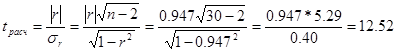 Для того чтобы определить оценку существенности коэффициента корреляции необходимо найти расчетное значение t-критерия Стьюдента: