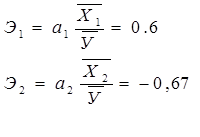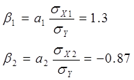 Разные единицы измерения делают несопоставимыми коэффициенты регрессии, когда возникает вопрос о сравнительной силе воздействия на результативный признак каждого из факторов чистой регрессии. Выразим их в стандартизированной форме в виде бета – коэффициентов и коэффициентов эластичности.