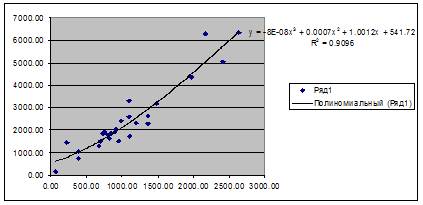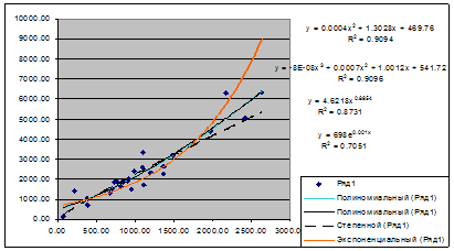 6. Найти наиболее адекватное уравнение регрессии с помощью средств инструмента Мастер диаграмм. Построить для этого уравнения теоретическую линию регрессии.