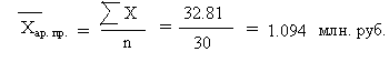 Xар. взв. =(0.94*3+1.02*7+1.1*11+1.18*5+1.26*4)/30=1.1млн. руб.