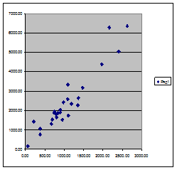 На рисунке 1 чётко видим точки, которые отстоят от основной массы точек на существенном расстоянии. Каждый «выброс» из этой массы означает аномальность единицы наблюдения либо по признаку X, либо по признаку Y.