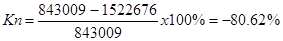 Процент прироста выручки, в результате, оказался незначительно выше процента прироста итога баланса, Kn > Kb, так как оба эти значения отрицательные.