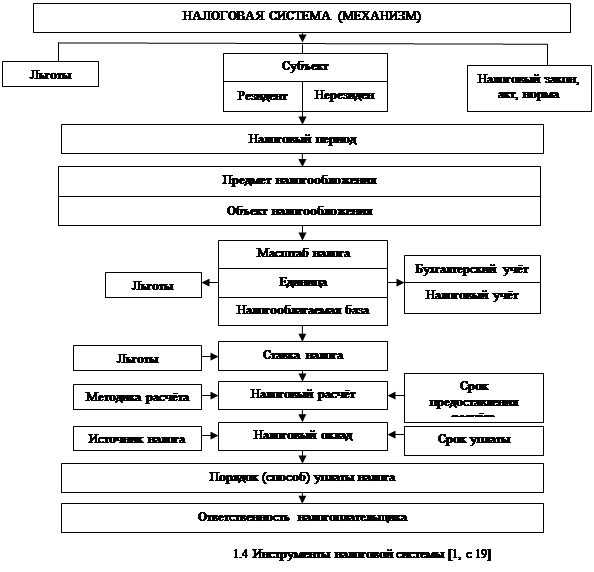 Инструментами налогового механизма или элементами налоговой системы выступают (см. рис.1.4):