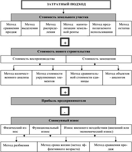 Основные этапы затратного подхода при оценке недвижимости и соответствующие им методы представлены на рис.1.