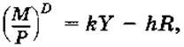 Перед параметром k в формуле стоит знак «плюс», что указывает на прямую зависимость спроса на деньги от уровня дохода, а знак «минус» перед параметром h отражает обратную зависимость спроса на деньги от ставки процента.[4]