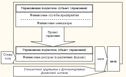 Если мы имеем в виду организацию управления, то это рациональное сочетание элементов управляющей системы с объектом управления для достижения поставленной цели. Схематично организацию финансовой работы можно представить рисунком, где подсистема, управляющая объектом, обеспечивает его функционирование (решение задач в сферах финансовой деятельности, выполнение функций финансовых ресурсов) для реализации цели обеспечения воспроизводства финансовых ресурсов (рис.1)