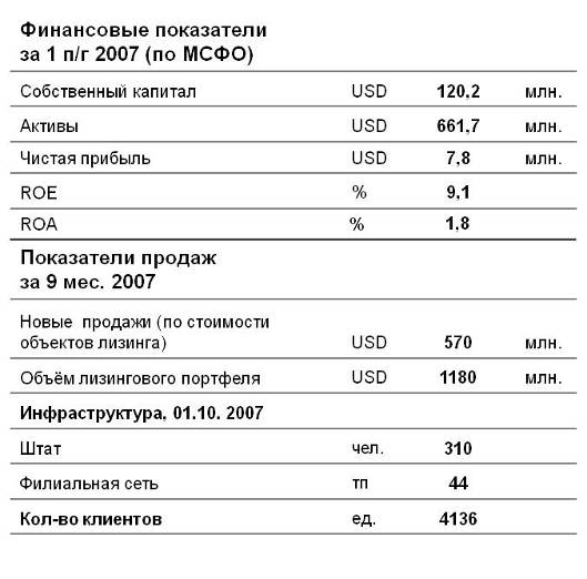 o 3-е место среди крупнейших лизинговых компаний по размеру собственного капитала в 2006г.;