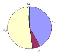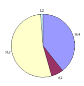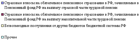 В структуре доходов Пенсионного Фонда наибольшую долю составляют безвозмездные поступления от других бюджетов бюджетной системы РФ, т.е. в 2006 г – 53,2%, а в 2009 г – их доля снизилась на 2,3% и составили 50,9%. Так же значительна доля поступлений страховых взносов на обязательное пенсионное страхование в РФ, зачисляемых в Пенсионный фонд РФ на выплату страховой части трудовой пенсии (в 2006 г – 39,4%, а в 2009 г их доля увеличилась на 2,7% и составили 42,1%).