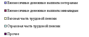 В структуре расходов Пенсионного Фонда наибольшую долю составляют расходы на страховую часть трудовой пенсии, т.е. в 2006 г. – 45,5%, а в 2009 г – их доля увеличилась на 0,9% и составила 46,4%. Так же значительна доля расходов на базовую часть трудовой пенсии (в 2006г – 32,7%, а в 2009г их доля снизилась на 0,2% и составили 32,5%).