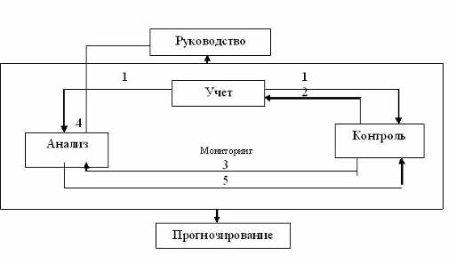 Таким образом, мониторинг представляет собой более высокую организационную систему по отношению к учету, анализу и контролю, которые носят дискретный характер, в то время как мониторинг предполагает непрерывность, возможность прогнозирования, нацеленность на предупреждение негативных изменений на основе оперативного отслеживания состояния объекта, что становится возможным только в результате взаимодействия учета, анализа и контроля во времени.