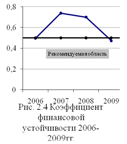 Как уже было сказано, теоретическое минимально рекомендуемое значение данного коэффициента составляет 0,5. Расчетные значения этого коэффициента за 2006-2009гг. и их динамика приведены в Приложении 9.